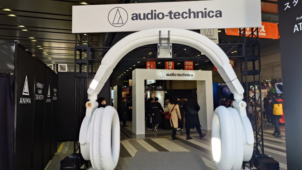 会場入り口にはオーディオテクニカの巨大ヘッドホンが