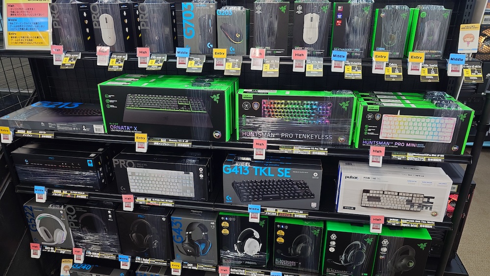 店内商品の配置変更が行われており、以前よりもゲーミングデバイスの取り扱いが少なくなりました。